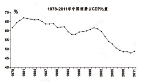 消費、投資、出口是拉動經(jīng)濟增長的三駕馬車。其中,消費又是最主要的馬車,是GDP增長的主導因素。從國民經(jīng)濟統(tǒng)計的角度看,最終消費包含兩部分,一部分是居民消費;另一部分是政府消費。有學者對1999——2008年我國31個?。ㄊ?、自治區(qū))的相關數(shù)據(jù)進行了分析,實證表明,從全國范圍來看,無論是城鎮(zhèn)、農(nóng)村居民消費還是政府消費對經(jīng)濟增長的影響都是顯著的,但三者對經(jīng)濟增長的拉動程度不同,城鎮(zhèn)、農(nóng)村居民消費和政府消費每增長1個單位,分別可以促進經(jīng)濟增長0.59、0.49和0.23個單位。從我國居民消費占GDP的比重來看,近十年來不升反降,僅為35%,而世界其他主要經(jīng)濟中心,這個數(shù)字都大于50%,歐洲是58%,日本是55%,美國高達72%。而自1978年以來,我國政府消費在最終消費中的占比幾乎每隔10年就要上一個臺階:80年代大約穩(wěn)定在21%——23%;90年代上升并穩(wěn)定在24%——25%;2000——2010年進一步提高到26%——27%;2011年已爬上28%。在1978——2011年的34年中,有22年政府消費的增速高于居民消費。